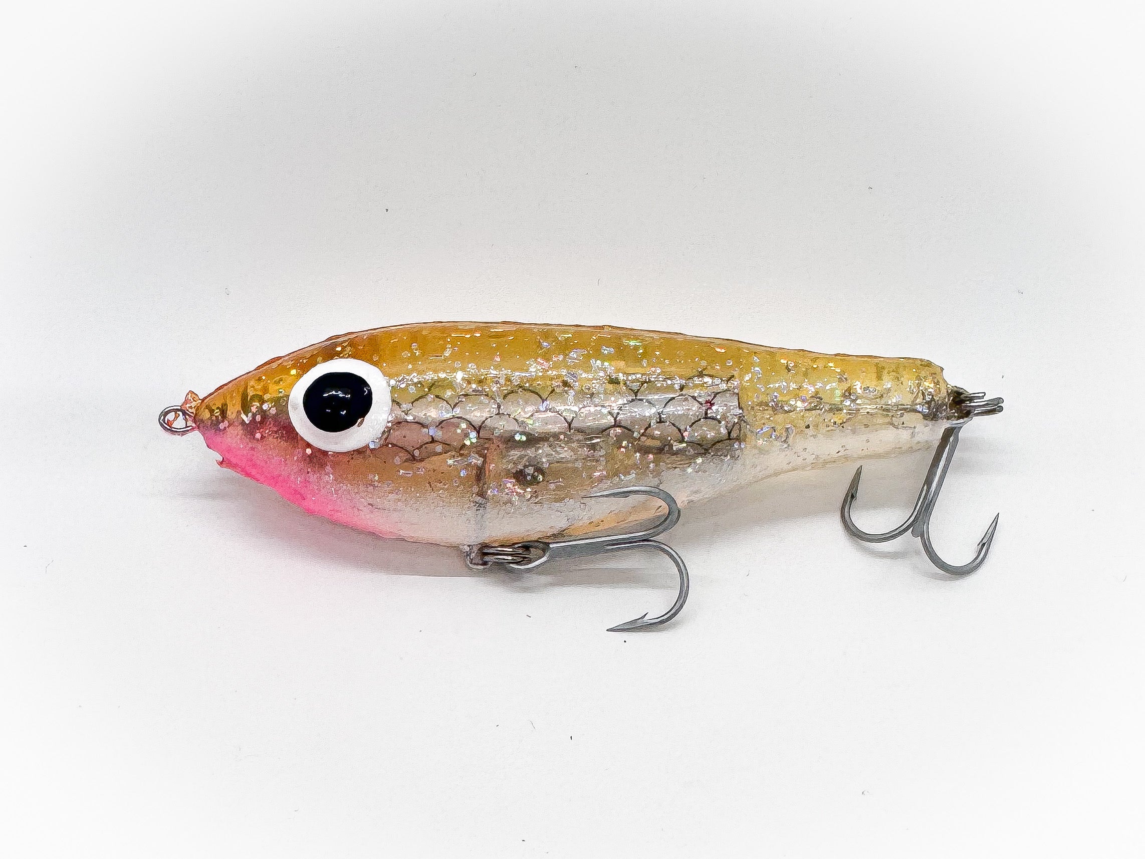 A favorite among wade fishermen, the Fat Boy features a wide-bodied profile and suspending action which catches large fish. Fat Boy is weighted for long casts and features a special vacuumed rattle which completes its effectiveness. Fat Boy Floater runs shallower than the Fat Boy and was designed by Paul Brown to fish "skinny" waters.